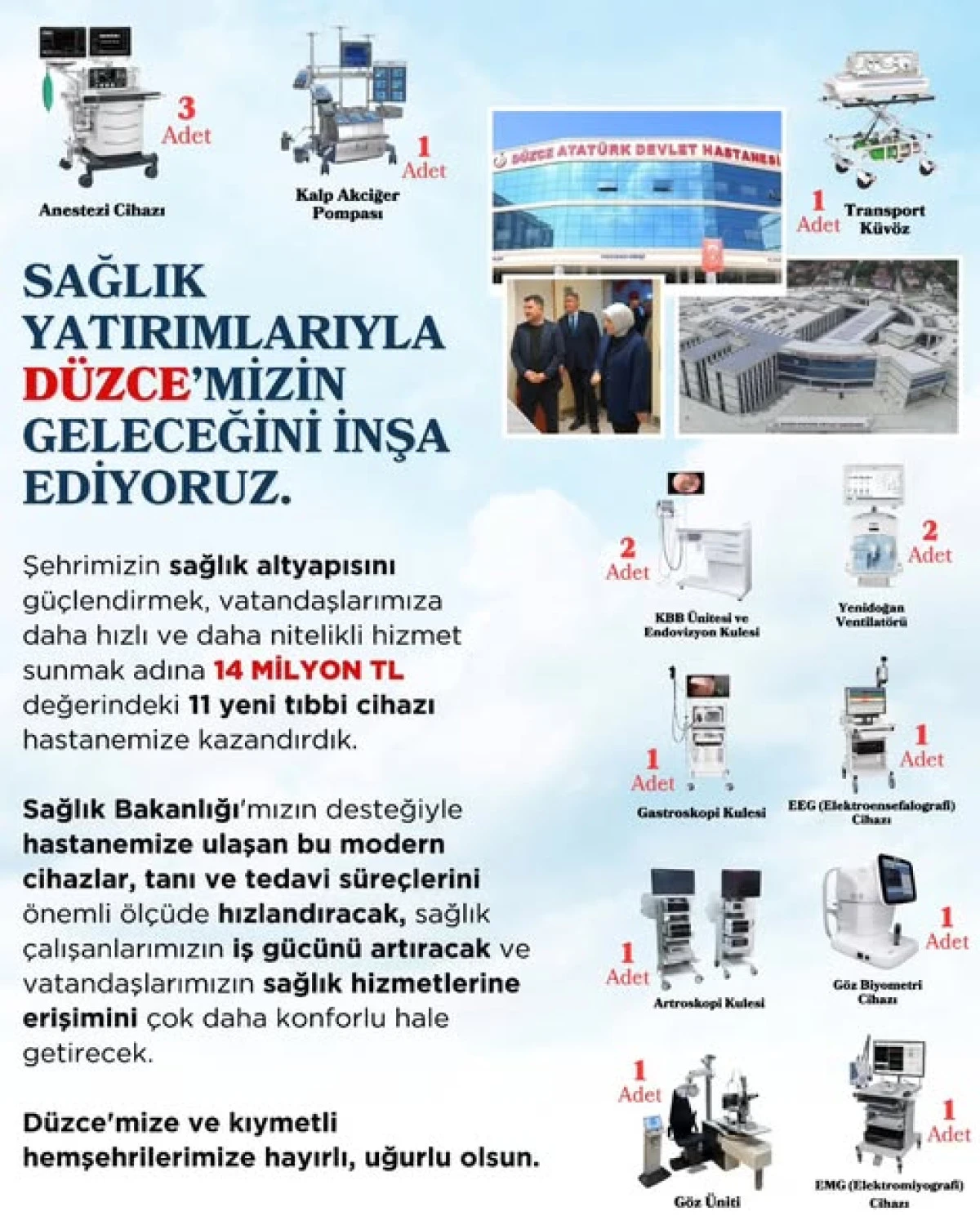 Vekil Öztürk açıklamasında:Şehrimizin sağlık altyapısını güçlendirmek, vatandaşlarımıza daha hızlı ve daha nitelikli hizmet sunmak adına 14 MİLYON TL değerindeki 11 yeni tıbbi cihazı hastanemize kazandırdık.