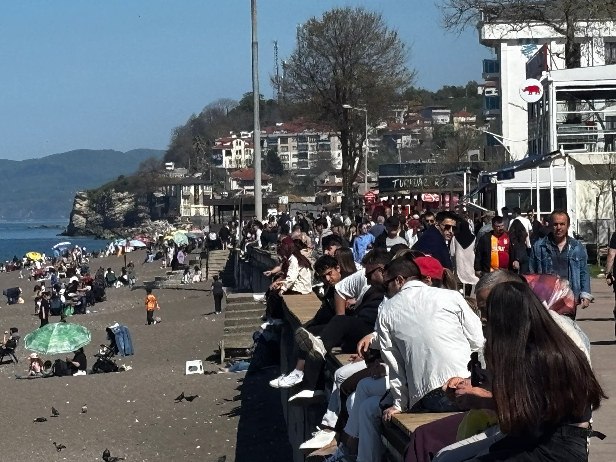 Sabah saatlerinden itibaren dolmaya başlayan kumsallar, günün ilerleyen saatlerinde yoğunluğunu artırdı. Sahilde yürüyüş yapanlar, güneşlenenler ve deniz kenarında vakit geçiren aileler, yaz sezonunu aratmayan görüntüler oluşturdu. Bazı vatandaşların denize girmeyi tercih ettiği gözlemlenirken, özellikle çocuklu ailelerin sahilde uzun süre vakit geçirdiği görüldü.
