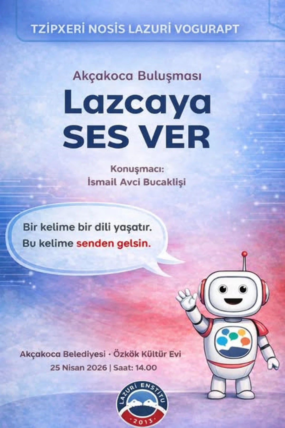 Görselde yer alan mesajda, projenin sadece akademik bir çalışma değil, toplumsal bir dayanışma hareketi olduğu vurgulanıyor. Yapay zekâya Lazca öğretilmesi projesi hakkında detaylı bilgi almak ve bu kültürel mirasa sahip çıkmak isteyen tüm vatandaşlar etkinliğe davet ediliyor.