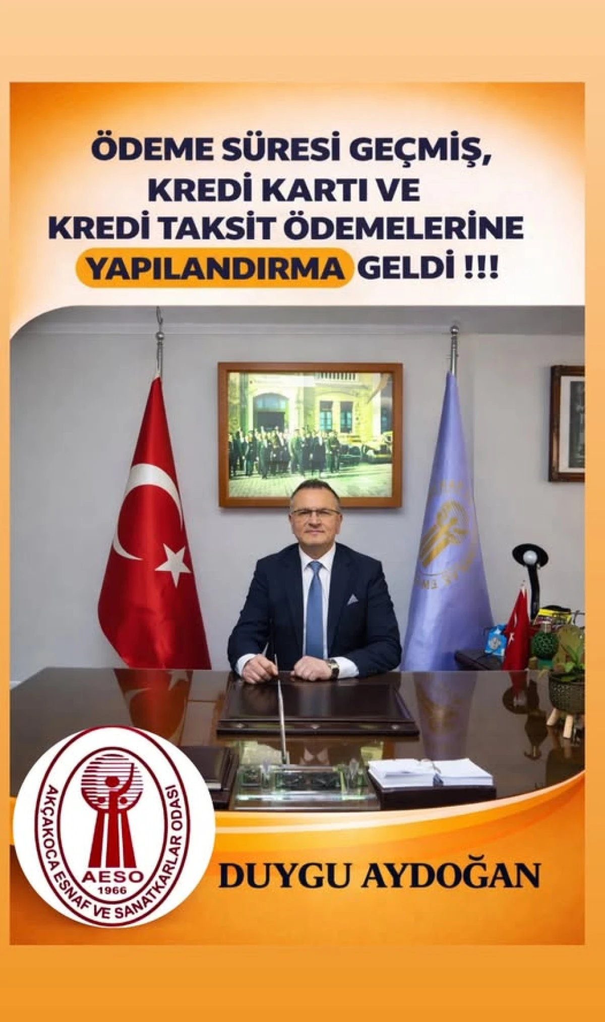 Akçakoca Esnaf ve Sanatkarlar Odası, Başkanı Duygu Aydoğan,borçlara yapılandırma geldiğini duyurdu