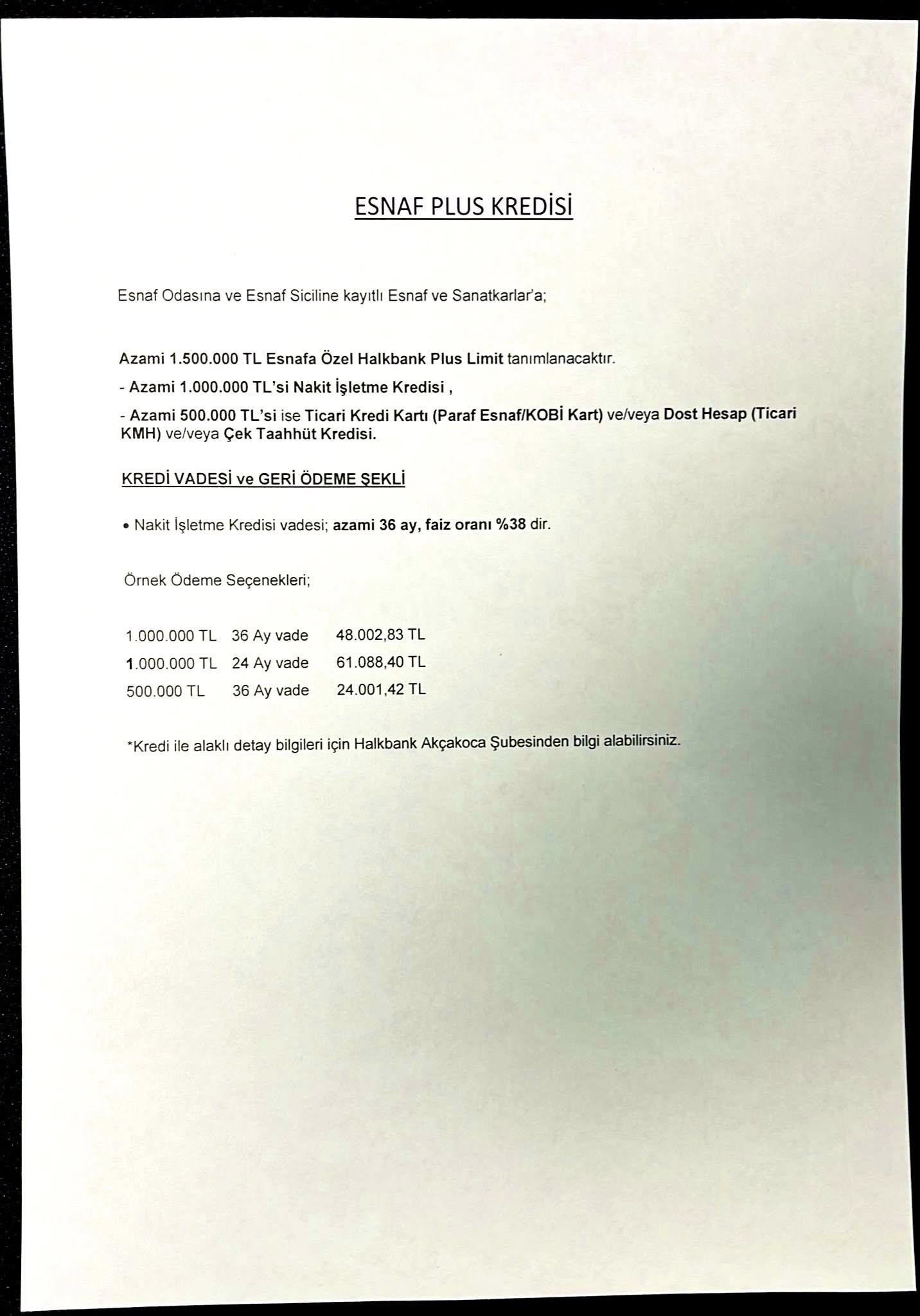 Sayın Müdürümüz tarafından sunulan ve esnaflarımızı kapsayan Kredi İndirim Fırsat Kampanyası hakkında bilgi paylaşılmıştır.