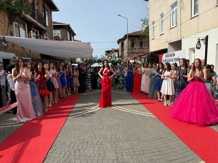 Akçakoca Nene Hatun Kız Meslek Lisesi Moda Tasarım Bölümü öğrencilerimizin kendi tasarladıkları kıyafetlerle gerçekleştirdikleri etkileyici defile vatandaşlar tarafından sık sık alkışlandı.