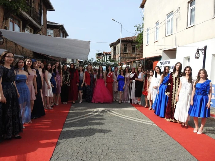 Akçakoca Nene Hatun Kız Meslek Lisesi Moda Tasarım Bölümü öğrencilerimizin kendi tasarladıkları kıyafetlerle gerçekleştirdikleri etkileyici defile vatandaşlar tarafından sık sık alkışlandı. Nene Hatun Mesleki ve Teknik Anadolu Lisesi "Moda Tasarım Teknolojileri Alanı" öğrencilerinin yıl boyunca hazırladıkları kıyafetlerin sergilendiği defile Akçakoca Tarihi Yukarı Mahalle Yöresel Pazarında gerçekleştirildi. Öğrenciler hazırladıkları Yöresel Kıyafet Defilesi ile izleyicilere unutulmaz bir görsel şölen yaşattı. Etkinlikte hem ülkemizin dört bir yanına ait yöresel kıyafetler hem de farklı ülkelere özgü kıyafetler sergilendi. Defilede podyuma çıkan öğrenciler, sadece kıyafetleri sunmakla kalmayarak, kıyafetlerini giydikleri yöre ya da ülkenin kültürüne özgü kısa ve müzikli koreografilerle sunumlarını zenginleştirdi. Sahnedeki performanslarıyla adeta profesyonel mankenlere taş çıkaran öğrenciler, izleyenlerden tam not aldı. Öğrenciler Halk Dansları Gösterileri İle Başlayan Defilede"Kadın elinde kumaşın serüveni" olarak dikilen günlük, abiye ve yöresel kıyafetlerin defilesi büyük beğeni topladı. Kendinden emin, dik yürüyüşleri ile mankenlere taş çıkartan manken öğrenciler, yaklaşık 1 saat boyunca podyumda defile yaptılar. Öte yandan defileyi minik mankenlerde eşlik etti. Defile sonunda ardından emeği geçerlere teşekkür edilip hatıra fotoğrafı çekildi.Daha sonra yöresel yemek ikramı yapılarak tören sona erdi