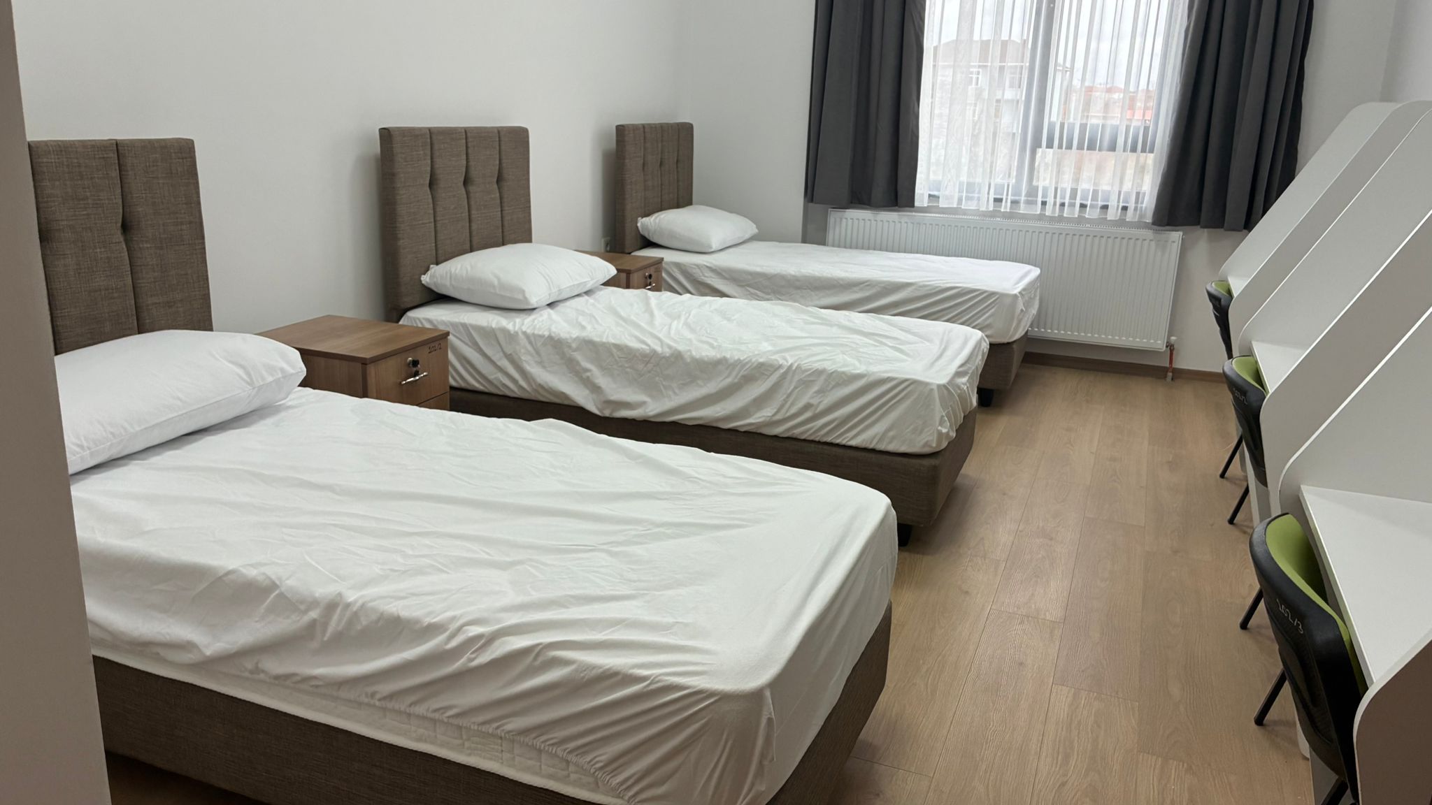 Öğrencilerin konforu düşünülerek planlanan pansiyonda odalar 3 kişilik olarak düzenlendi. Her odada özel banyo ve tuvalet bulunurken, öğrencilerin rahat bir ortamda ders çalışabilmeleri için çalışma alanları ve ortak kullanım alanları da oluşturuldu.