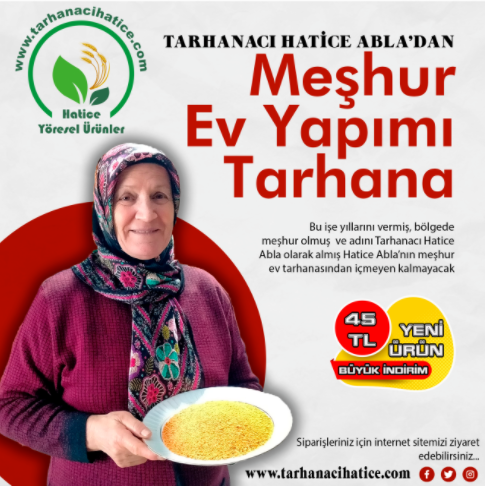 İnternet ortamında açmış olduğu e-ticaret sitesinde ise kendi yapmış olduğu ürünleri pazarlıyor. Daha düne kadar kendi çevresine ve yapmış olduğu ürünlerin tadını bilenlere satış yapan Hatice " class="text-dark font-weight-bold" target="_blank">Tarhanacı Hatice Abla’nın ürünlerinin içerisinde ise tarhanadan kuskusa, erişteden silora, baklavadan ev makarnasına, salçasından sirkesine, sucuğundan zeytinine kadar daha birçok ürün yelpazesini hizmete sunmuş durumda. Özellikle oldukça güzel yorumlar ve geri dönüşler alan Hatice " class="text-dark font-weight-bold" target="_blank">Tarhanacı Hatice Abla, müşterilerinden tam not alıyor. Özellikle İstanbul, Ankara, İzmir gibi büyük şehirlerden müşterin arayarak yada internet sitesinden ulaşarak Hatice " class="text-dark font-weight-bold" target="_blank">Tarhanacı Hatice Abla'nın ürünlerini kargo yoluyla temin ediyorlar.
