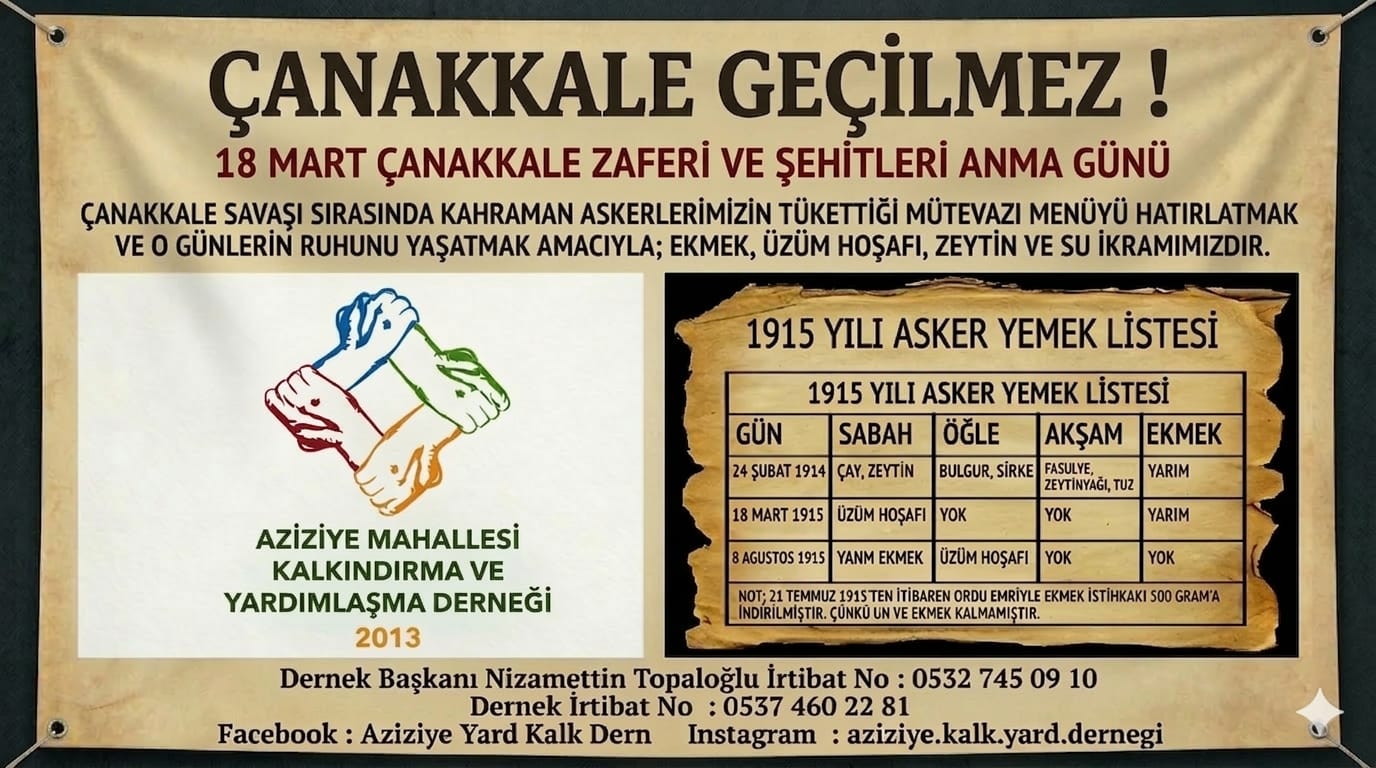 Düzce Aziziye Yardımlaşma ve Kalkınma Derneği, 18 Mart Çanakkale Şehitleri Anma Günü dolayısıyla anlamlı bir anma programı düzenleyecek.