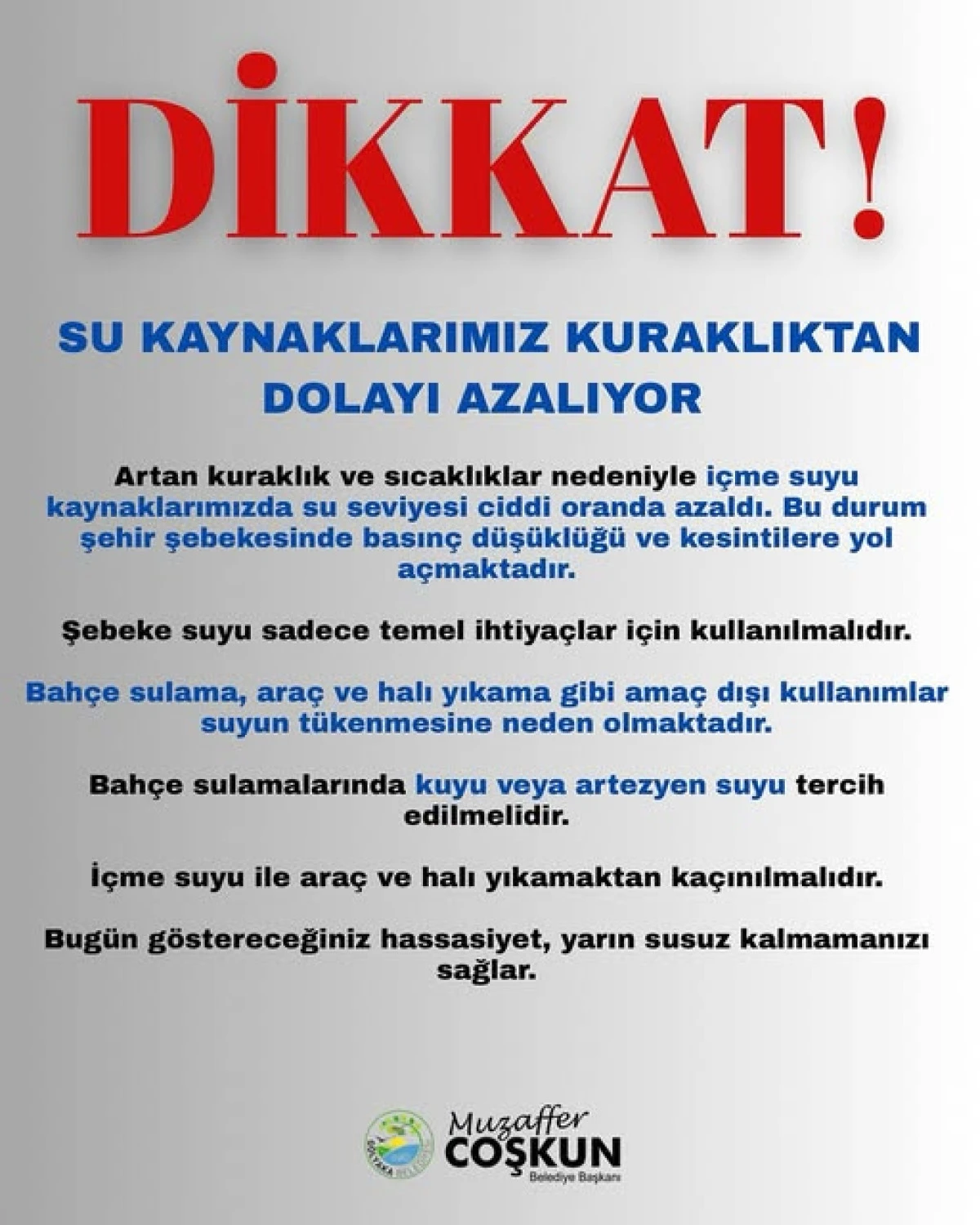 Artan kuraklık ve sıcaklıklar nedeniyle içme suyu kaynaklarımızda su seviyesi ciddi oranda azaldı. Bu durum şehir şebekesinde basınç düşüklüğü ve kesintilere yol açmaktadır.