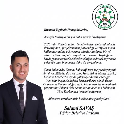 Şimdi önümüzde, ilçemizi hak ettiği yere taşıyacak yepyeni bir yıl var. 2026’da da aynı azim, kararlılık ve hizmet aşkıyla; birlik ve beraberlik içinde çalışmaya devam edeceğiz.