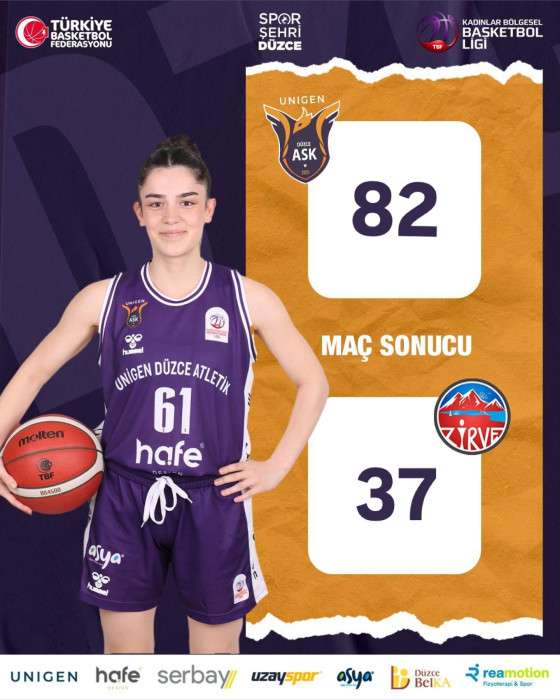2024-2025 sezonunda ilimizi kadınlar Bölgesel Basketbol liginde temsil eden Unigen Düzce Atletik 5 Ocak 2025 Pazar günü saat 16.00 da Düzce Kalıcı konutlar spor salonunda karşılaşmayı farklı kazandı 87-37