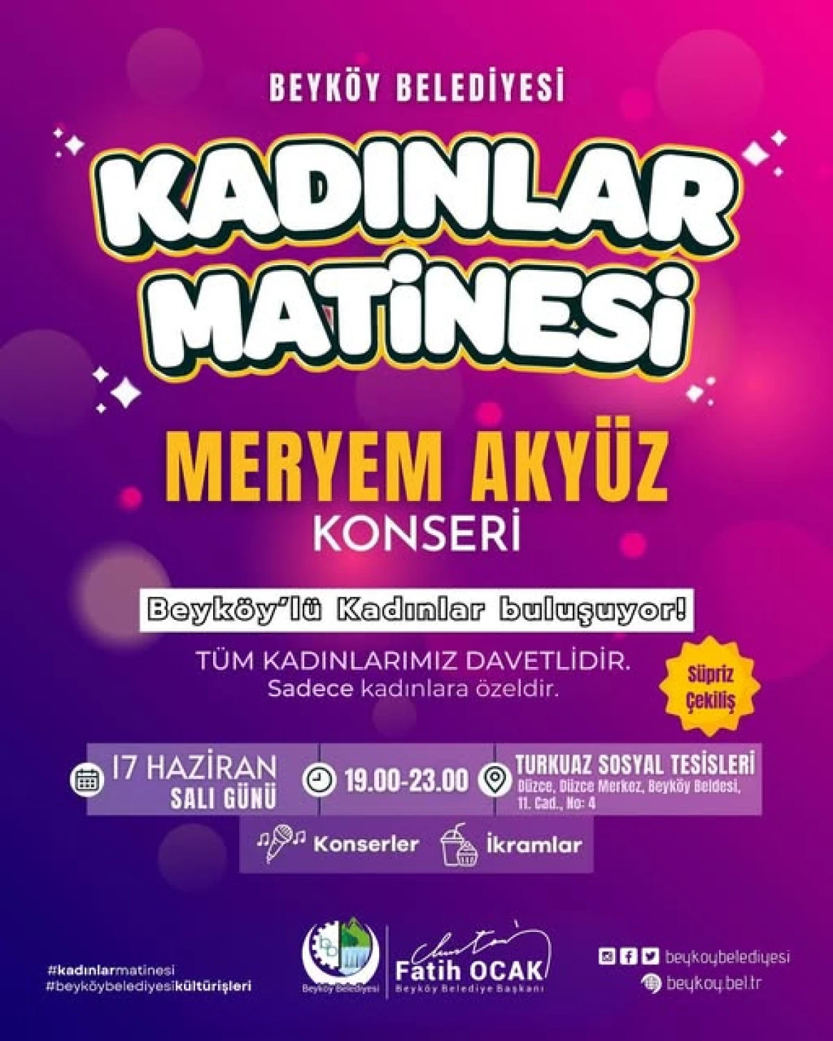 Turkuaz Sosyal Tesisleri’nin açık alanında yapılacak olan ve yalnızca kadınlara özel olarak planlanan bu güzel gecede, tüm kadın hemşehrilerimizi eğlenmeye bekliyoruz.