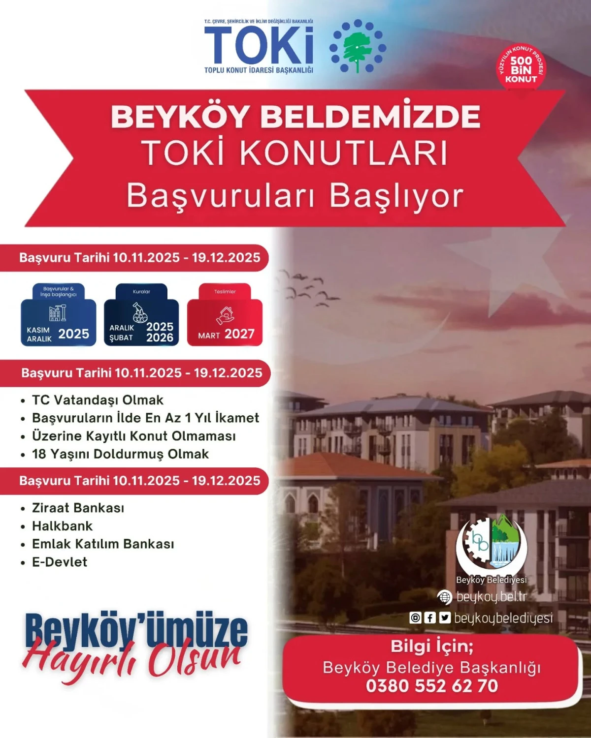 Beyköy’de TOKİ Başvuruları 10 Kasım’da Başlıyor!