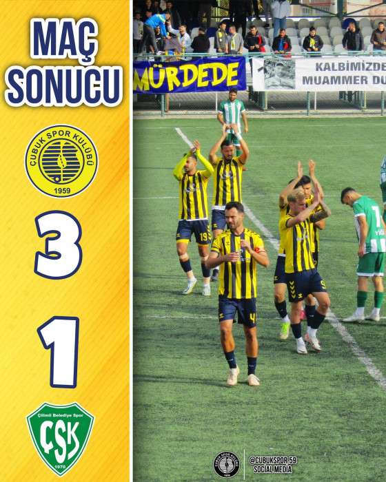 Müsabakada ev sahibi Çubukspor’un gollerini 12. dakikada Ali Ayhan Keskin, 21. dakikada Mustafa Yıldız ve 80. dakikada Yusuf Apaydın attı. Temsilcimizin tek golünü 31 dakikada Ensar Duman kaydetti.