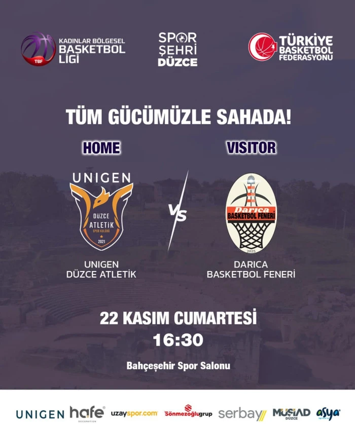 2025-2026 sezonunda ilimizi Kadınlar Bölgesel Basketbol liginde temsil edecek olan Unigen Düzce Atletik,sezonun ilk maçını 22 Kasım 2025 Cumartesi günü Düzce kalıcı konutlar spor salonunda Darıca Gelişim takımı ile yapacak. Müsabaka saat 16.30’da başlayacak