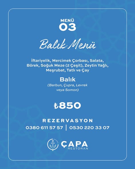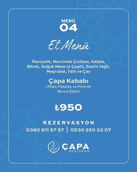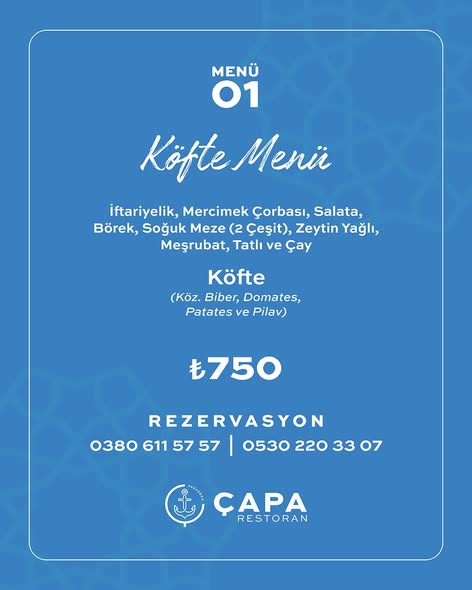 Ramazan’a özel hazırlanan Çapa menüleriyle iftar artık sadece bir gelenek değil, unutulmaz bir deneyim.