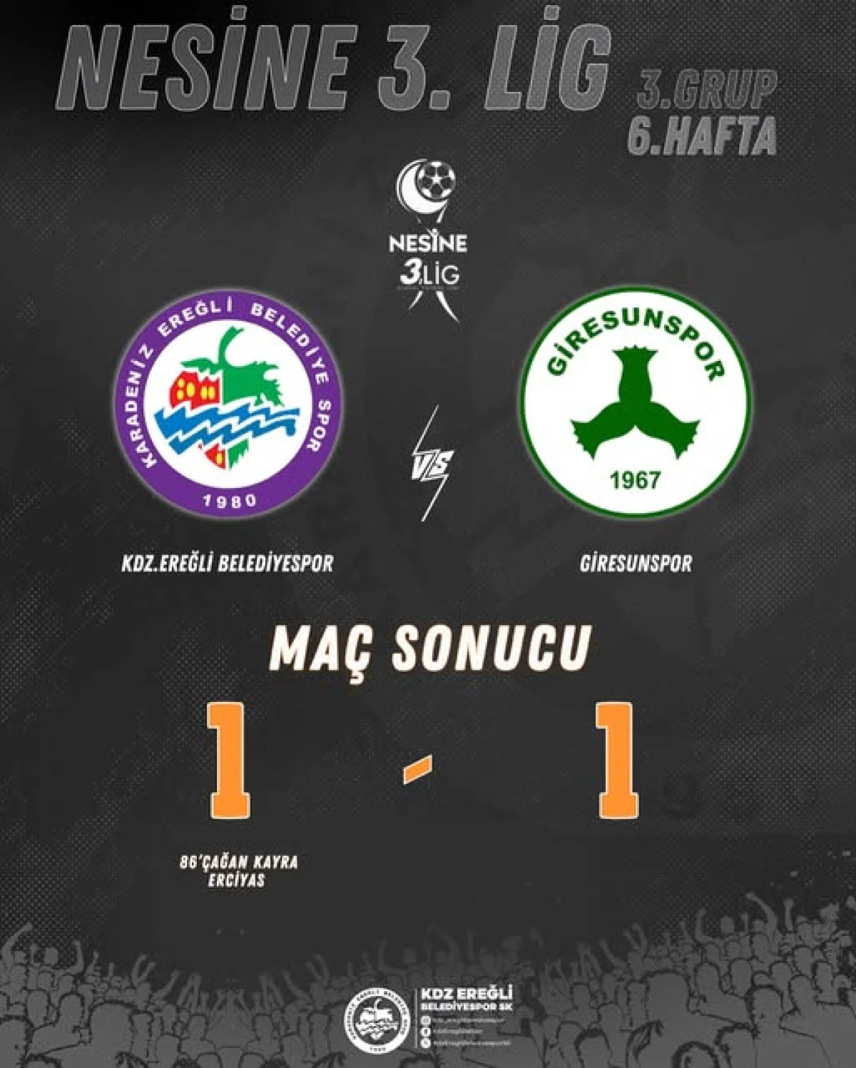 Her iki takım 1'er puanı getiren golleri Ereğli Belediyespor adına 85'de Çağan Kayra Erciyas atarken, Giresunspor adına ise 75'de Şahin Gidik attı.