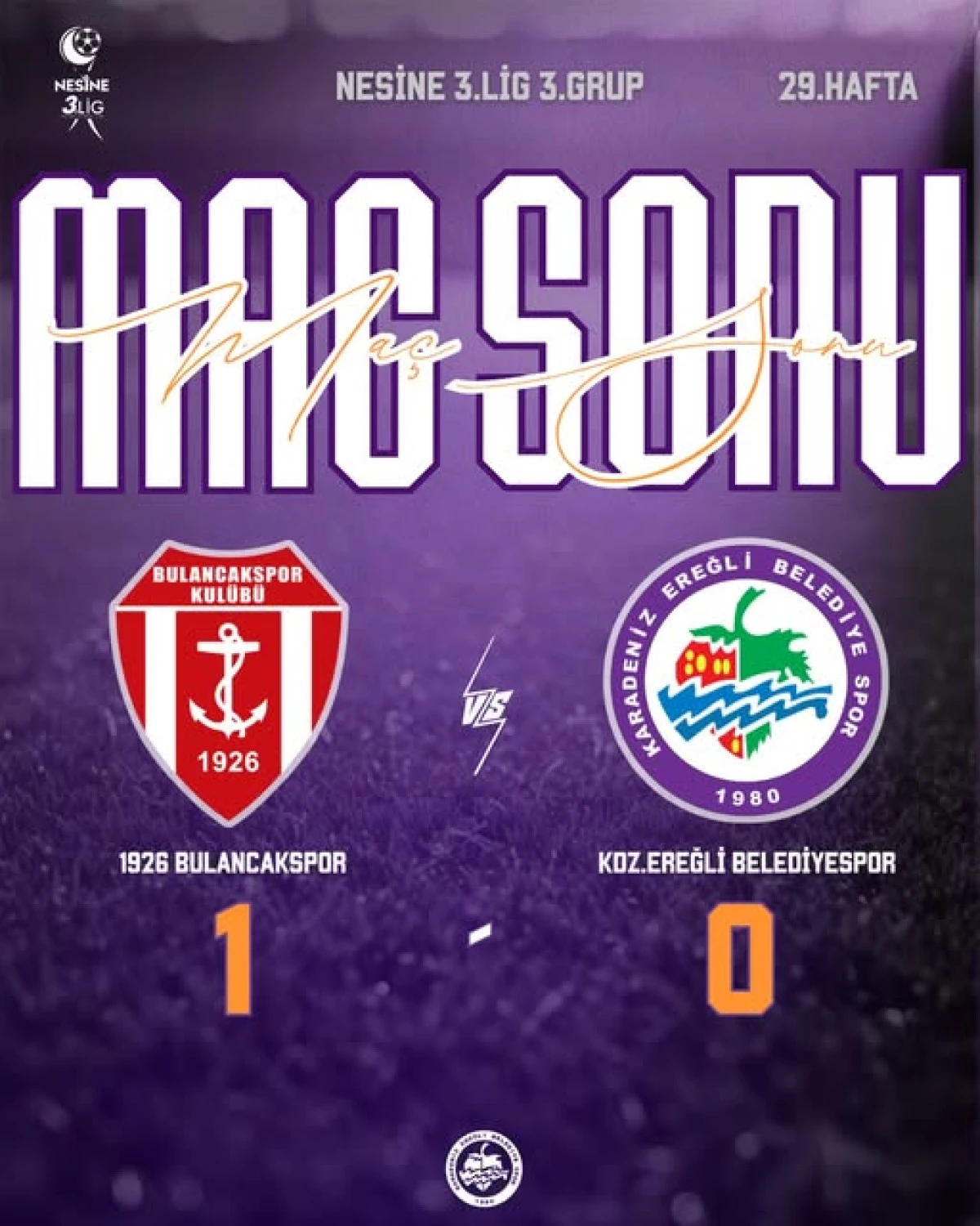 TFF 3. Lig 3. Grup'ta heyecan dolu bir mücadele yaşandı. Ligin 29. haftasında 1926 Bulancakspor, kendi sahasında Kdz. Ereğli Belediyespor'u konuk etti. Maç boyunca üstünlüğünü koruyan ev sahibi ekip, rakibini 1-0 mağlup etmeyi başardı.