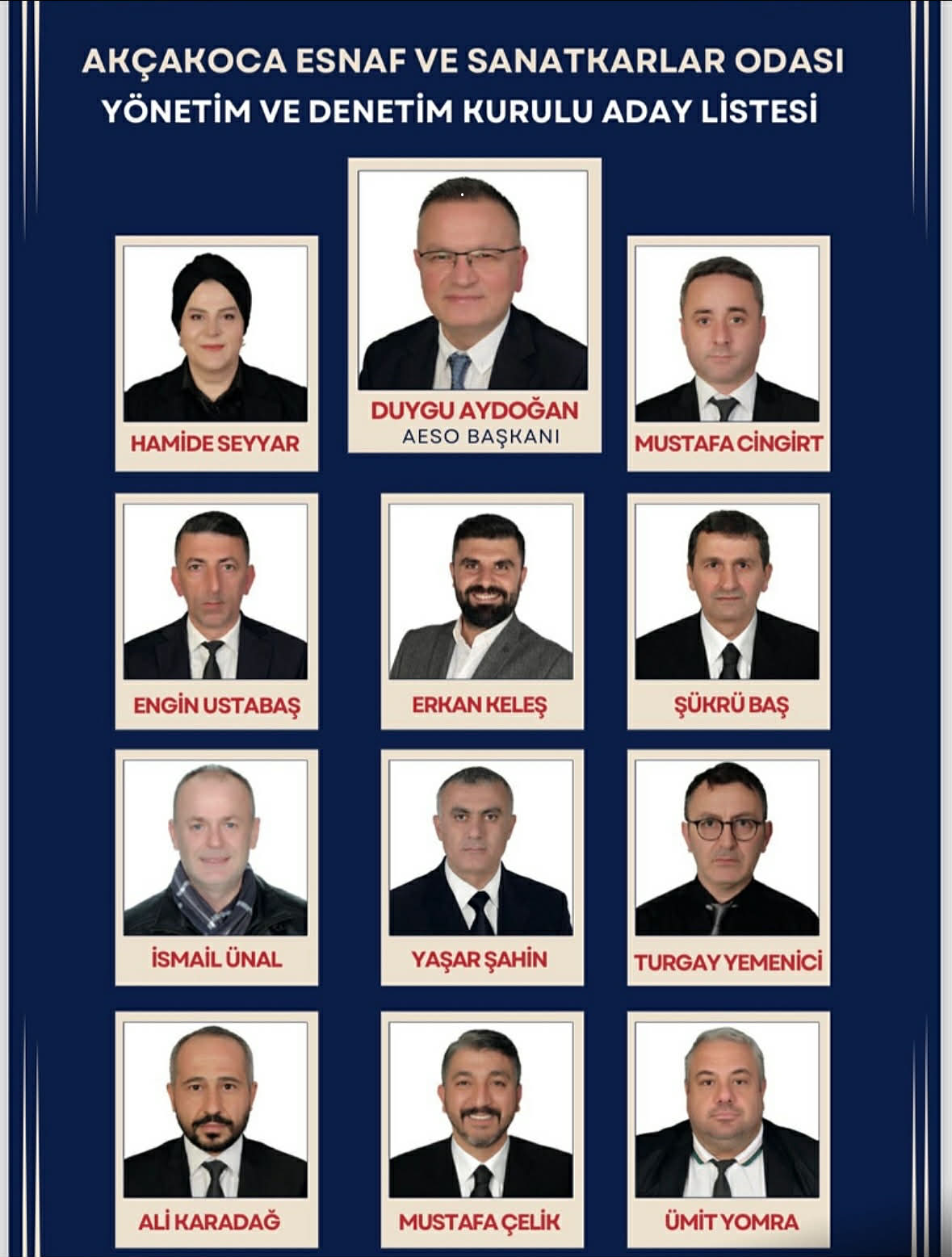 Akçakoca’nın en büyük sivil toplum kuruluşlarından biri olan Akçakoca Esnaf ve Sanatkârlar Odası, yeni dönem için seçim sürecine giriyor. Mevcut Başkan Duygu Aydoğan, ekibiyle birlikte 2. dönem için yeniden aday olduklarını açıkladı.