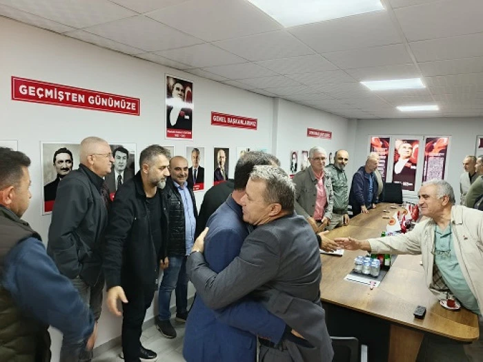 Akçakoca CHP İlçe Başkanı Tuğrul Abanoz, bugün makamında önemli misafirleri ağırladı. Ziraat Odası Başkanı Kadir Mutluoğlu ve iş insanı Ziraat Yüksek Mühendisi Ali Uzun Abanoz’u ziyaret ederek yeni görevinde başarı dileklerinde bulundular.