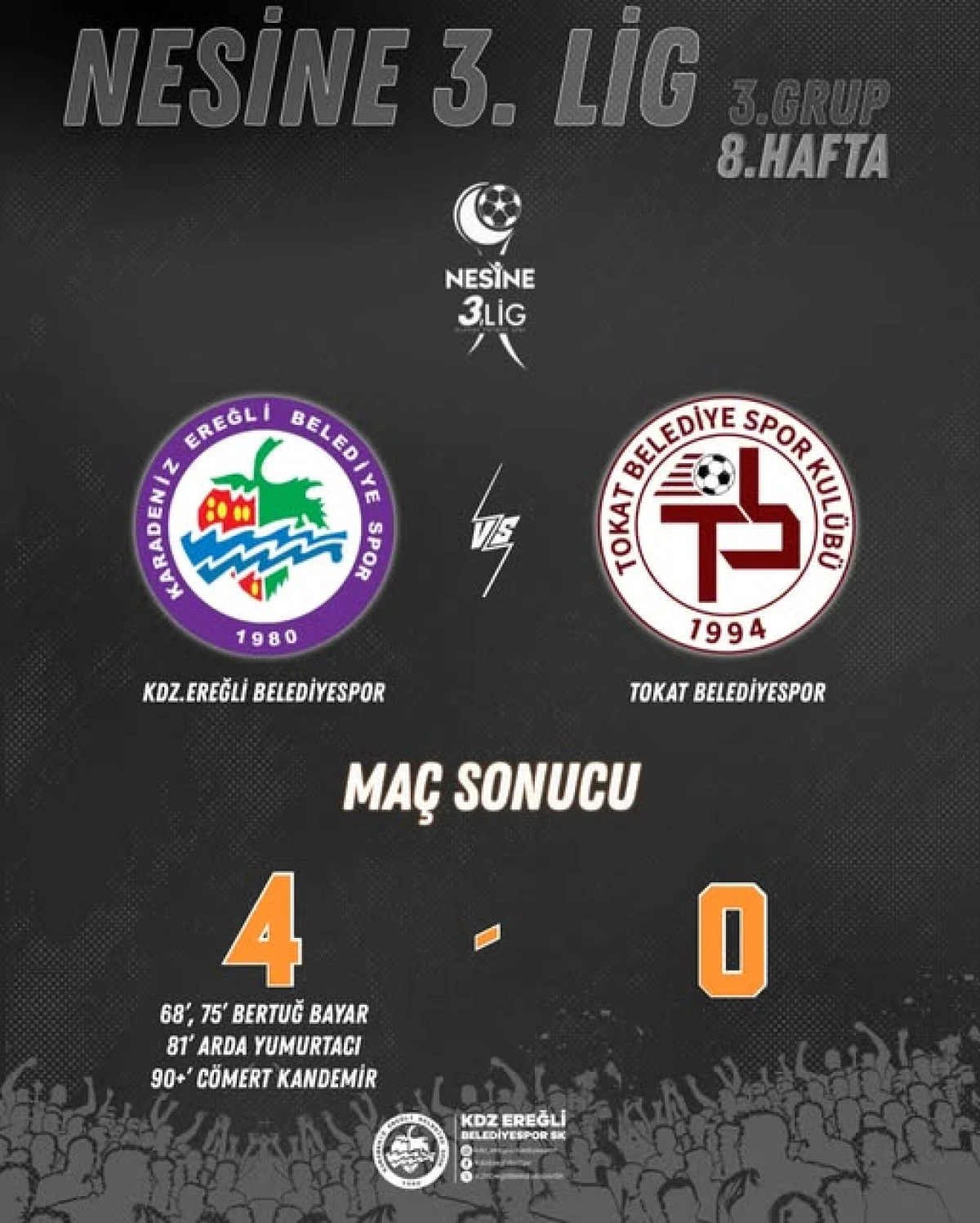 Kdz. Ereğli Belediyespor aldığı bu galibiyet sonrasında 8 olan puanını 11 yaparak, 8. sıraya yerleşti. Tokat Belediyespor ise 10 puanla 9. sırada kaldı.Hava sıcak saha futbol oynamaya elverişli,Maça ilgi çok fazla idi.Maçı Sıfır tv canlı yayınladı,Maçı Tokatspor asbaşkanı Ahmet Akçan ve Eski futbolcu Ertuğrul Sağlam tribündeki yerini alırken,Ereğli protokolü maça ilgi göstermedi,Maça çok büyük emniyet tedbirleri alındı.Ereğli belediye ilk yarıda istediği futbolu ortaya koyamazken,ikinci yarıda Efe Çölbeyin oyuna girmesi ile adeta şov yaparak bu güzel futbolunu 4 golle süsledi.Böylece ilk kez galibiyet sevincini kutlarken,şeytanının bacağını kırdıklarını ifade ettiler.Tokatspor ilk yarıda oynadıkları futbol ile iyi izlenim verirlerken,ikinci yarıda bu performansı gösteremediler.