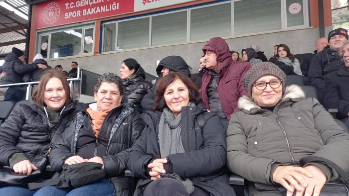 Maç sonunda Halil Posbıyık ve eşi Neriman Posbıyık sahaya inerek sporcuların sevincine ortak oldu.
