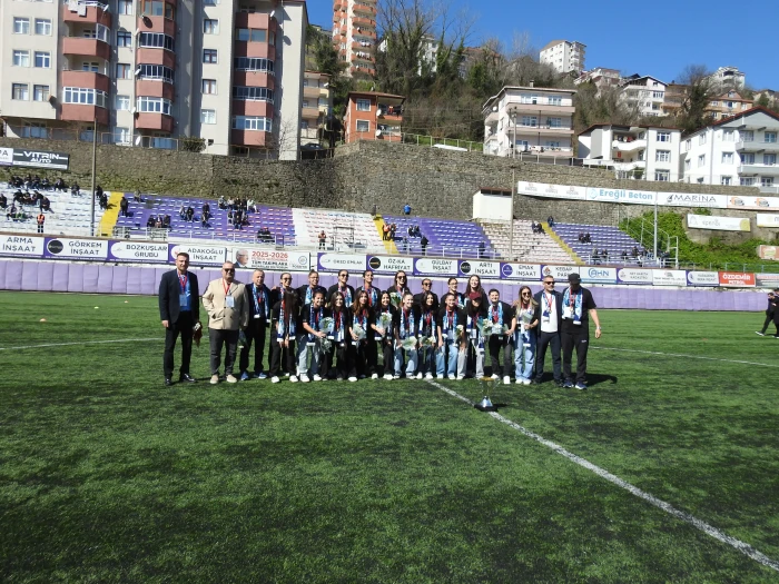 Şehit Vefa Karakurdu Stadı’nda düzenlenen törende, TFF Kadınlar 2. Ligi’nde gösterdiği üstün performansla 1. Lig’e yükselen Kdz. Ereğli Lisesi Spor Kulübü oyuncuları ve teknik heyetine şampiyonluk kupası ve madalyaları takdim edildi.