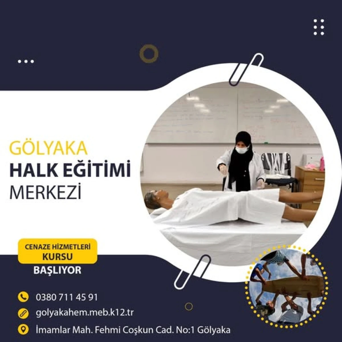 13 Nisan 2026 tarihinde Saat 09.30’da Gölyaka Halk Eğitimi Merkezinde Cenaze Hizmetleri kursu açılmış olup kursa kayıt için sırasıyla;