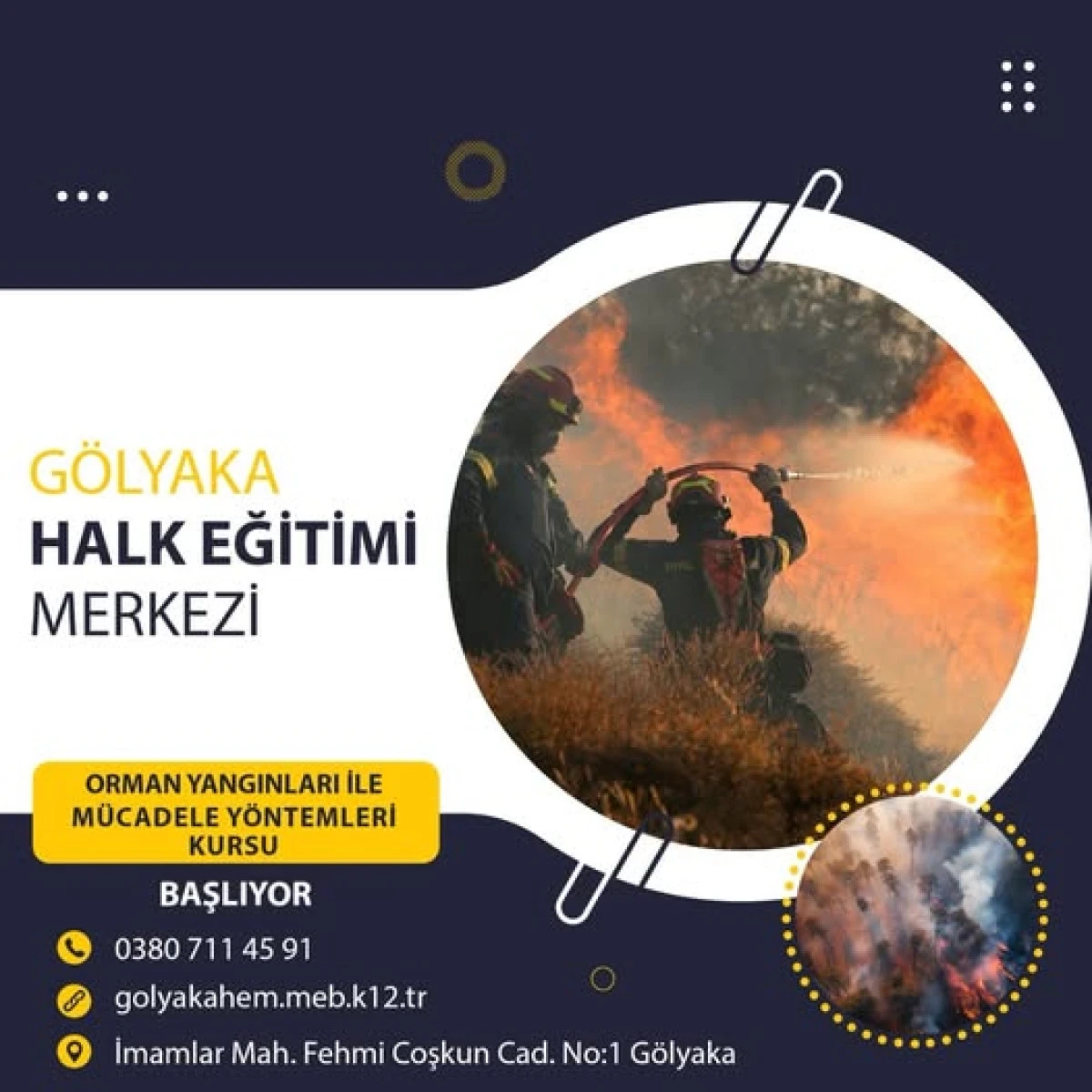 Gölyaka Halk Eğitimi Merkezi Müdürlüğü tarafından yapılan açıklamaya göre, “Orman Yangınları ile Mücadele Yöntemleri” kursu 17 Nisan 2026 tarihinde saat 09.30’da başlayacak. Son yıllarda artan orman yangınlarına karşı toplumsal bilinç oluşturmayı hedefleyen kurs, hem teorik hem de pratik bilgiler içerecek.