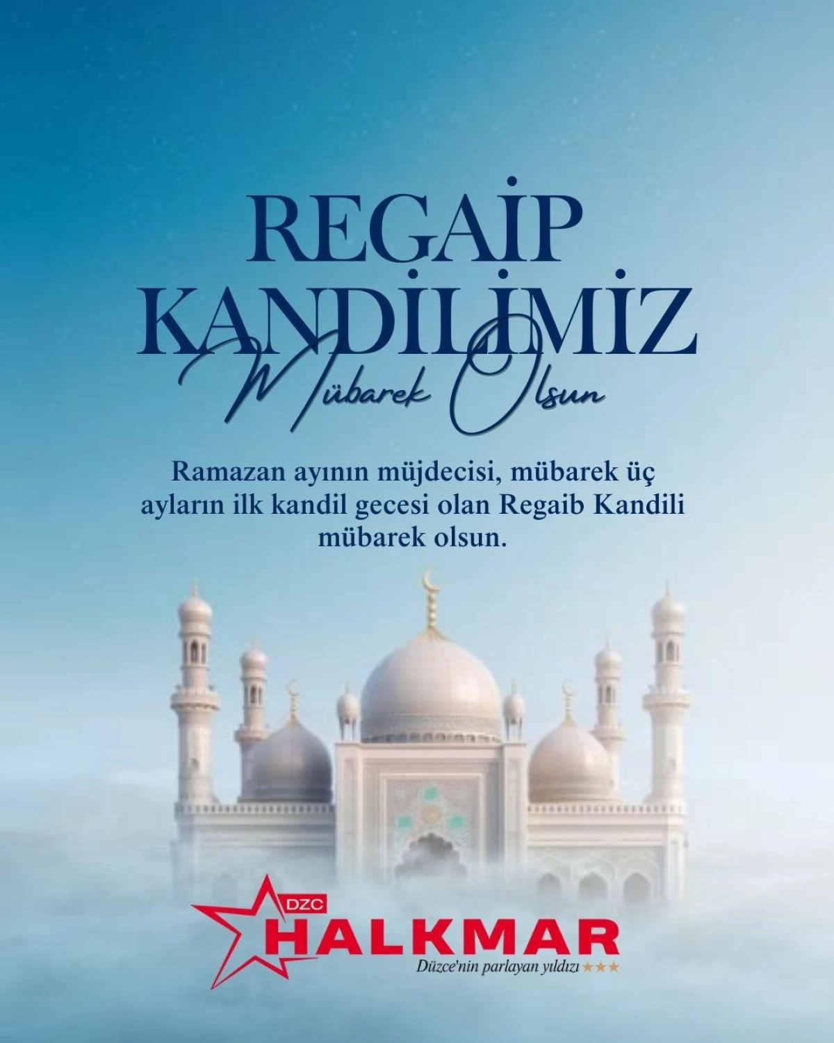 DÜZCE’NİN PARLAYAN YILDIZI HALKMAR ,mübarek üç ayların gelişi ve Regaip Kandili dolayısıyla bir mesaj yayımlayarak, “Rabbim, ömrümüzün her gecesini Regaip Gecesi’nin bereketi, rahmeti ve umuduyla buluştursun, bizleri Şaban’ın şefaatine, Ramazan’ın mağfiretine erişen kullarından eylesin” dedi.