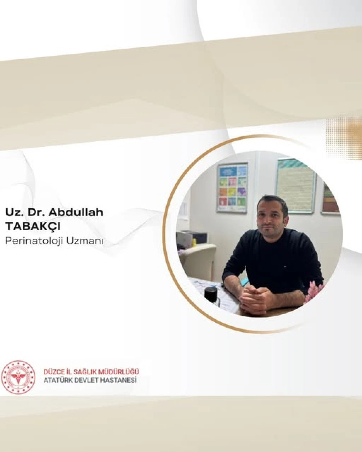 Düzce Atatürk Devlet Hastanesine Perinatoloji Uzmanı Dr. Abdullah TABAKÇI, göreve başlamıştır.