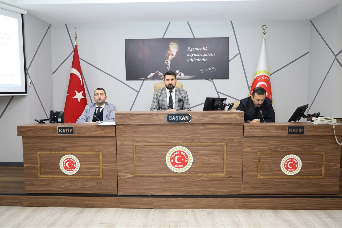 Düzce il genel   Meclis Başkanı Fazlı Koç konuşmasına şöyle devam etti; 12 Kasım Düzce Depremi’nin yıl dönümü dolayısıyla da; “Deprem, şehrimizin hafızasında derin izler bırakan büyük bir afettir. Düzce, yaşadığı o zorlu sürecin ardından daha dirençli bir şehir olma yolunda önemli adımlar atmıştır.” dedi. Toplantıda, Su ve Kanal Hizmetleri Müdürlüğü ile Sıfır Atık Müdürlüğü bütçeleri oy birliğiyle kabul edildi. Ayrıca Gençlik Spor, Turizm, Köye Yönelik Hizmetler ve Tarım Komisyonu raporu, Komisyon Başkanı Sefa Uçar tarafından sunularak oy birliğiyle kabul edildi. Oturum sonunda, Grup Başkan Vekili Hasan Aktürk, MHP ve Yeniden Refah Partisi adına yaptığı konuşmada şehitlerimize rahmet, depremde hayatını kaybeden vatandaşlarımıza ise saygı ve rahmet dileklerini iletti. Bir sonraki birleşimin 13 Kasım Perşembe günü saat 10.00’da yapılacağı duyuruldu.