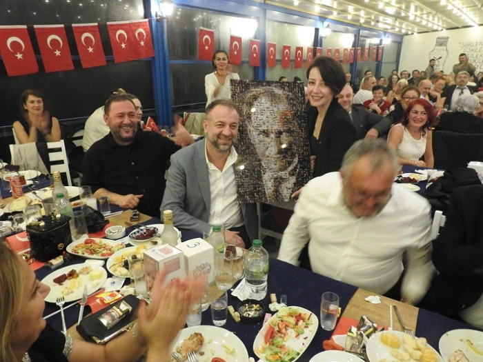 Eski CHP Meclis Üyesi Kenan Akın,dün gece kutlanan Cumhuriyet bayramı etkinlikleri kapsamında yapılan Cumhuriyet balosunda20.000 tl açık artırma ile Atatürk posterini hediye olarak kendisine çıkınca bu posteri CHP ilçe başkanlığına hediye etti