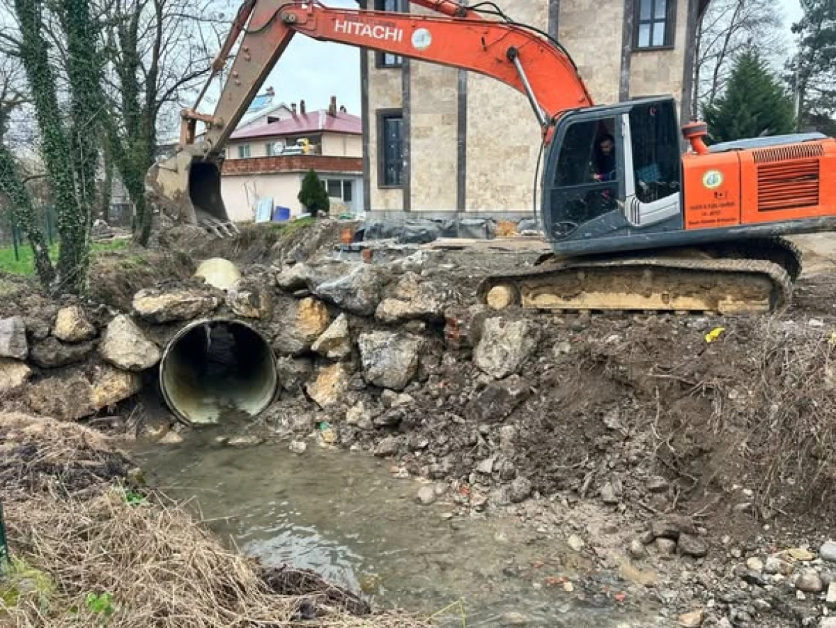 Çalışmalar kapsamında dere yataklarında taş tahkimatı yapılırken, suyun kontrollü ve düzenli şekilde ilerlemesini sağlamak için 1500’lük çapta, 20 metre uzunluğunda CTP boru yerleştirme işlemlerine başlandı.