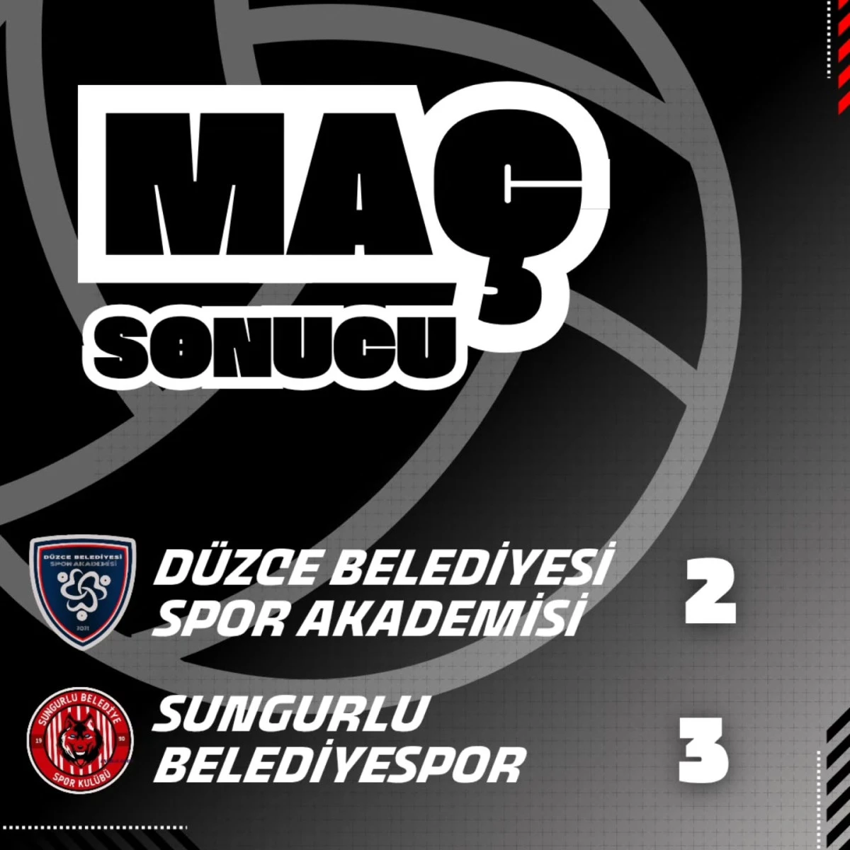 İlimiz erkekler 1. voleybol liginde temsil eden Düzce Belediyespor, grubun şampiyonluk adayı Sungurlu Belediyespor'a 3 - 2 yenildi.