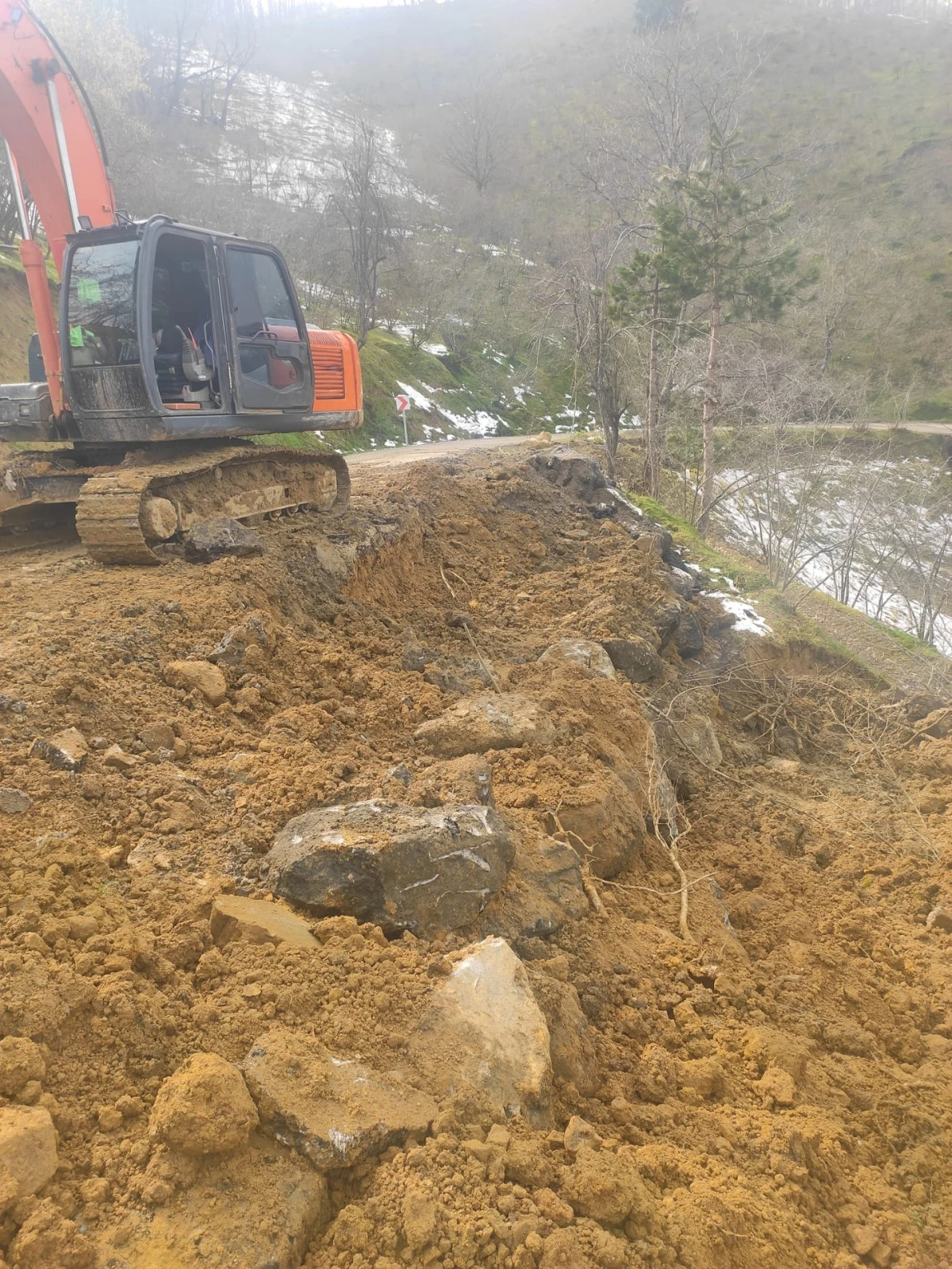 Son günlerde etkili olan yağışların ardından bölgede oluşan toprak kayması nedeniyle yol güvenliği ve çevredeki tarım alanlarının korunması amacıyla ekipler hızlı bir şekilde harekete geçti. Yapılan teknik incelemelerin ardından riskli bölgede taş tahkimatı uygulamasına geçilirken, zeminin güçlendirilmesi için dolgu çalışmaları da eş zamanlı olarak yürütülüyor.