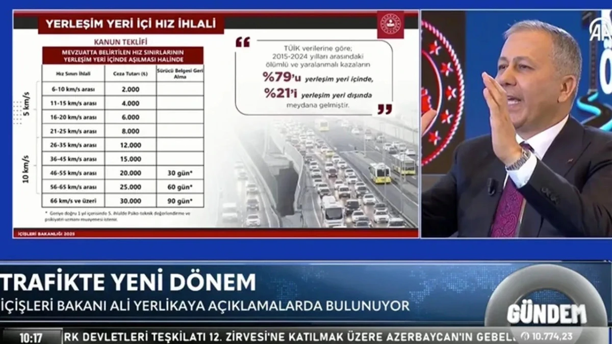 İçişleri Bakanı Ali Yerlikaya, yeni trafik ceza sistemini açıkladı. Hız sınırı, kırmızı ışık ve telefon cezaları katlanacak; ehliyet iptalleri yolda.