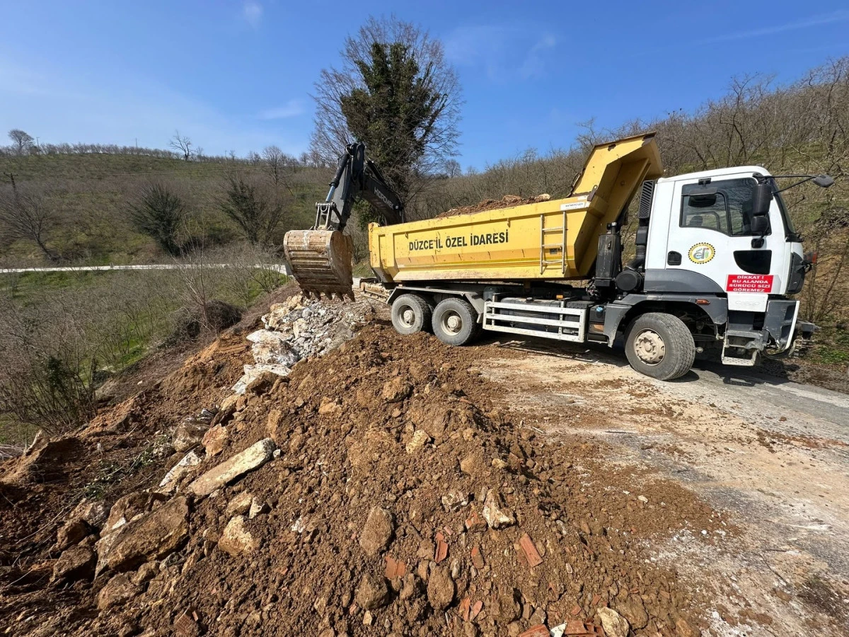 Akçakoca ilçesine bağlı Tahirli ve Kalkın Köyü grup yolunda meydana gelen heyelanların ardından başlatılan çalışmalar başarıyla tamamlandı.