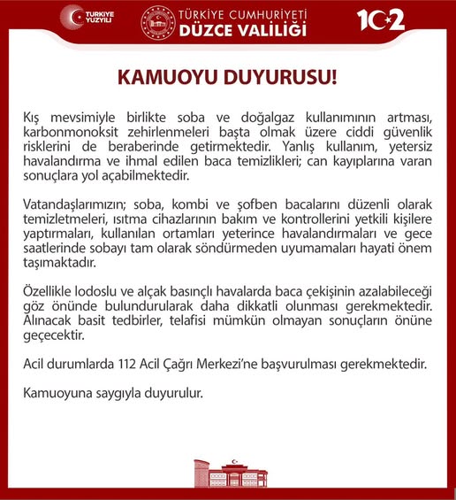 Kısacası, duyuru karbonmonoksit zehirlenmelerini önlemek için alınması gereken hayati önlemleri kamuoyuna hatırlatıyor.