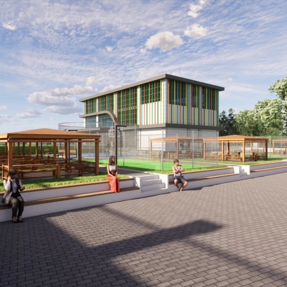 Halı Saha Tesisleri bünyesinde misafirhane, kafeterya ve modern soyunma odalarını içeren hizmet binasında sona yaklaşıldığı belirtildi.